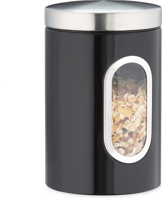 Zwarte metalen voorraadbus met venster - 1.4 liter - Merkloos