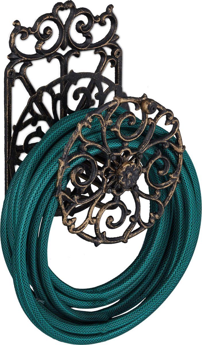 Relaxdays Tuinslanghouder Gietijzer - Wandslanghouder - Slanghouder - Antiek - Draaibaar Bronzen