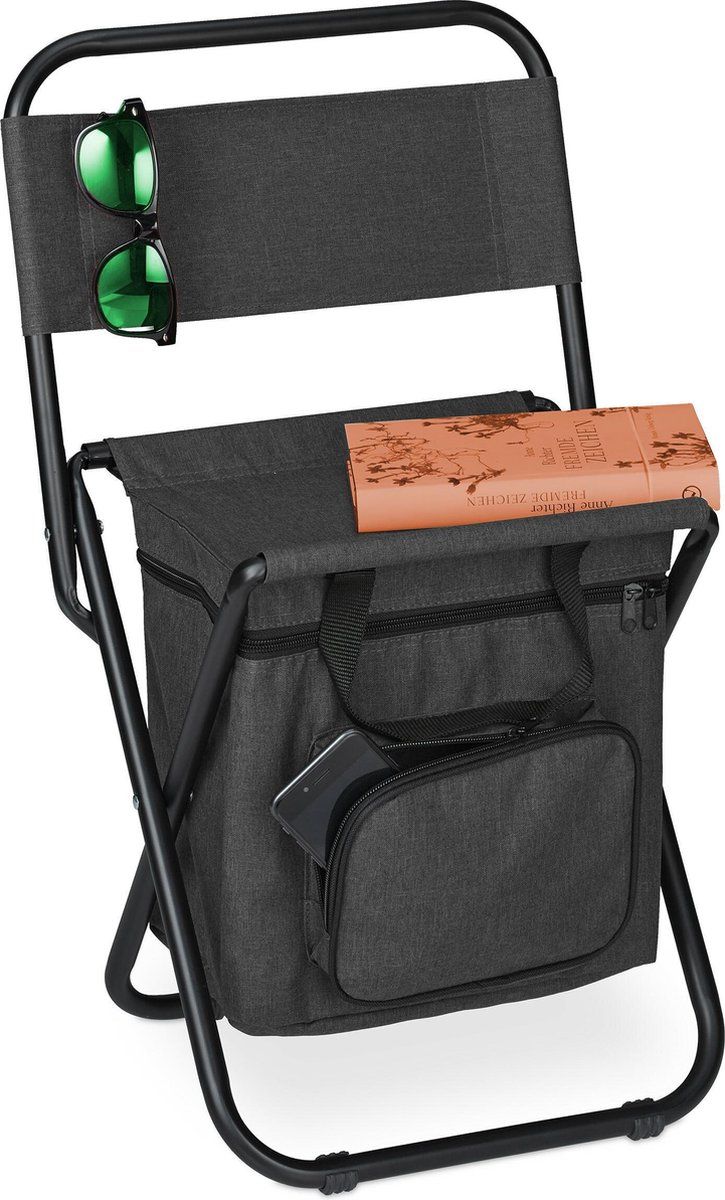 Relaxdays campingkruk met leuning - kampeerkruk - viskrukje - opvouwbaar - zwart
