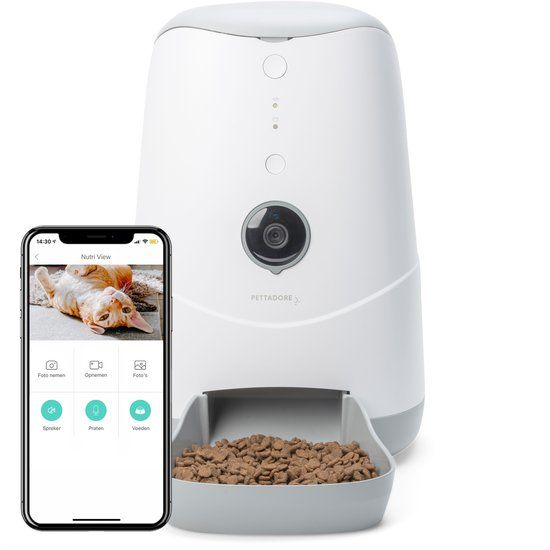 Pettadore Nutri View 2 - Smart Voerautomaat voor Katten & Honden - Met Camera & App - Wit - 3.7L - Accessoires voor fonteinen en vijvers