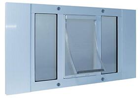 Hoge kwaliteit witte afwerking aluminium constructie kan gemakkelijk worden geïnstalleerd in de meeste aluminium schuifraam stijlen. Medium sjerp venster huisdier deur hoogte is 16-5/8 inch Flexibele flap is gemaakt van doorzichtig vinyl om huisdieren door de opening te laten kijken en is niet giftig voor extra veiligheid Aanbevolen voor huisdieren 13 tot 35 pond Animal Lock-Out slide inbegrepen Hulp nodig? E-mail Ideal Pet Products deskundige Amerikaanse klantenservicespecialisten zeven dagen per week!