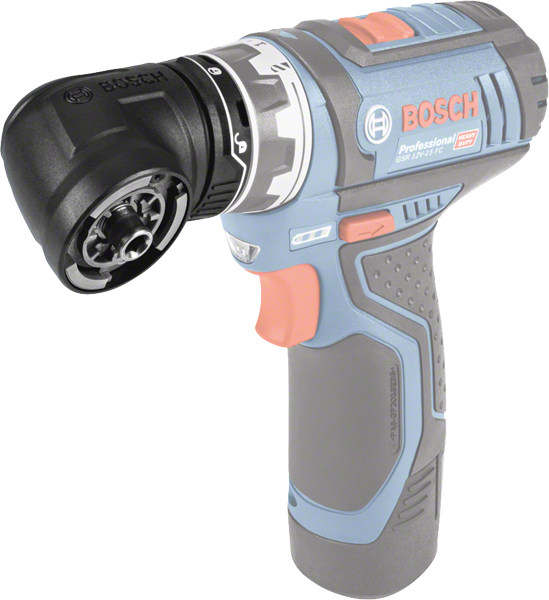 Redefine your limits – de flexibiliteit van vijf oplossingen in één compact gereedschap Hoge flexibiliteit: de GFA 12-W verandert de accuschroevendraaier in een haakse boormachine Compatibel met GSR 12V-15 FC (0 601 9F6 ...) “One-Click”-interface zorgt in een oogwenk voor een stevige bevestiging op de machine. Alle andere FlexiClick-opzetstukken kunnen bovendien bevestigd worden aan de GFA 12-W (bijv. de wisselboorhouder GFA 12-B) Compact ontwerp: de compacte bouwvorm (koplengte: 61 mm) maakt het werken op zeer krappe plekken mogelijk Eenvoudige bedienbaarheid: de GFA 12-W kan in 16 verschillende posities (360°) vastgezet worden zonder het opzetstuk van de accuschroevendraaier te hoeven afnemen