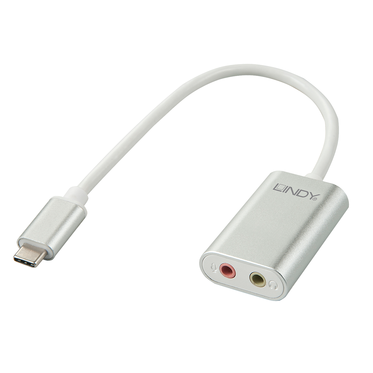 - USB 2.0 audio adapter\n- Connections:\n- USB connector type C\n- 1x 3.5mm stereo jack for headphones / speakers\n- 1x 3.5mm mono jack for microphone\n- Chip: Crystal Media\n- Plug & Play - no drivers required\n- Compatible with computers and mobile devices (smartphones / tablets) with USB Type C connector\n- Material: aluminum with white plastic covers\n- With fixed cable, approx. 17cm\n- Housing dimensions (WxDxH): 4.5 x 2.7 x 1.1cm