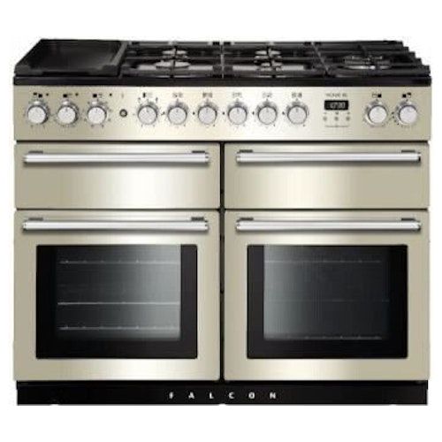 Nexus se 110 fornuis met een gaskookplaat, 5 branders, wokhouder, multi-zone, oven links 73 liter, oven rechts 73 liter, sudderoven 21 liter, grill