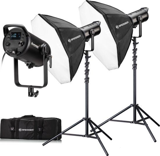 De Bresser BR-180RGB COB LED Duo Kit bevat twee BR-180RGB COB LED-lampen met een variabele kleurtemperatuur van 2700 tot 6500K. Elke lamp wordt geleverd met een 80cm octabox en een luchtgeveerd lampstatief met een maximale hoogte van 240cm. Er wordt ook een stevige transporttas meegeleverd voor bescherming tijdens opslag en transport. Met deze kit beschik je als foto- en videograaf over een set waarmee je direct veelzijdig inzetbaar bent.