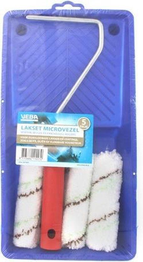 Deze set bestaat uit een lekbak, beugel en 3 microvezel(lak)rollers. Geschikt voor dunvloeibare lakken en coatings, zoals beits, olien of vloeibare voorstrijk.