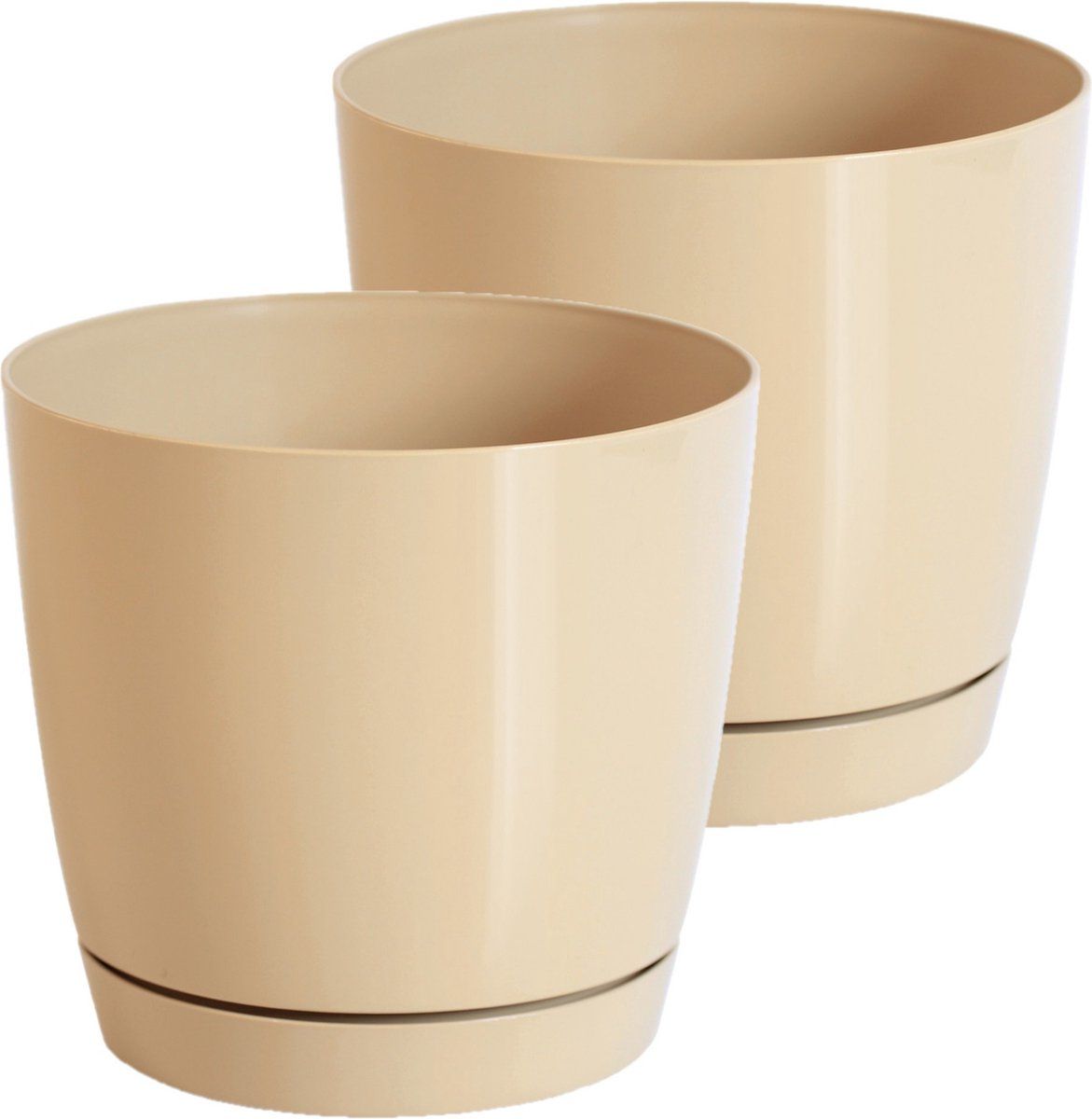 Bekijk productProsperplast Set van 2x plantenpotten/bloempotten kunststof rond glanzend mat goud dia 24 cm - Potten voor yoghurtmakers