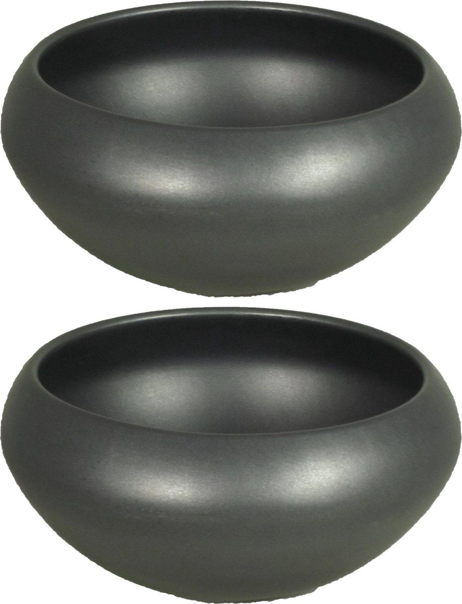 Floran 2x stuks bloempot schaal mat antraciet keramiek H12 x D26 cm - Potten voor yoghurtmakers