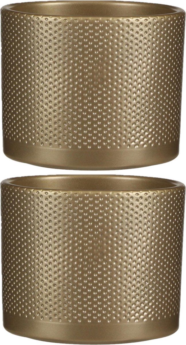 Mica Decorations Bloempot - Goud - Keramiek - H14.5 x D17.5 cm - Set van 2 - Potten voor yoghurtmakers