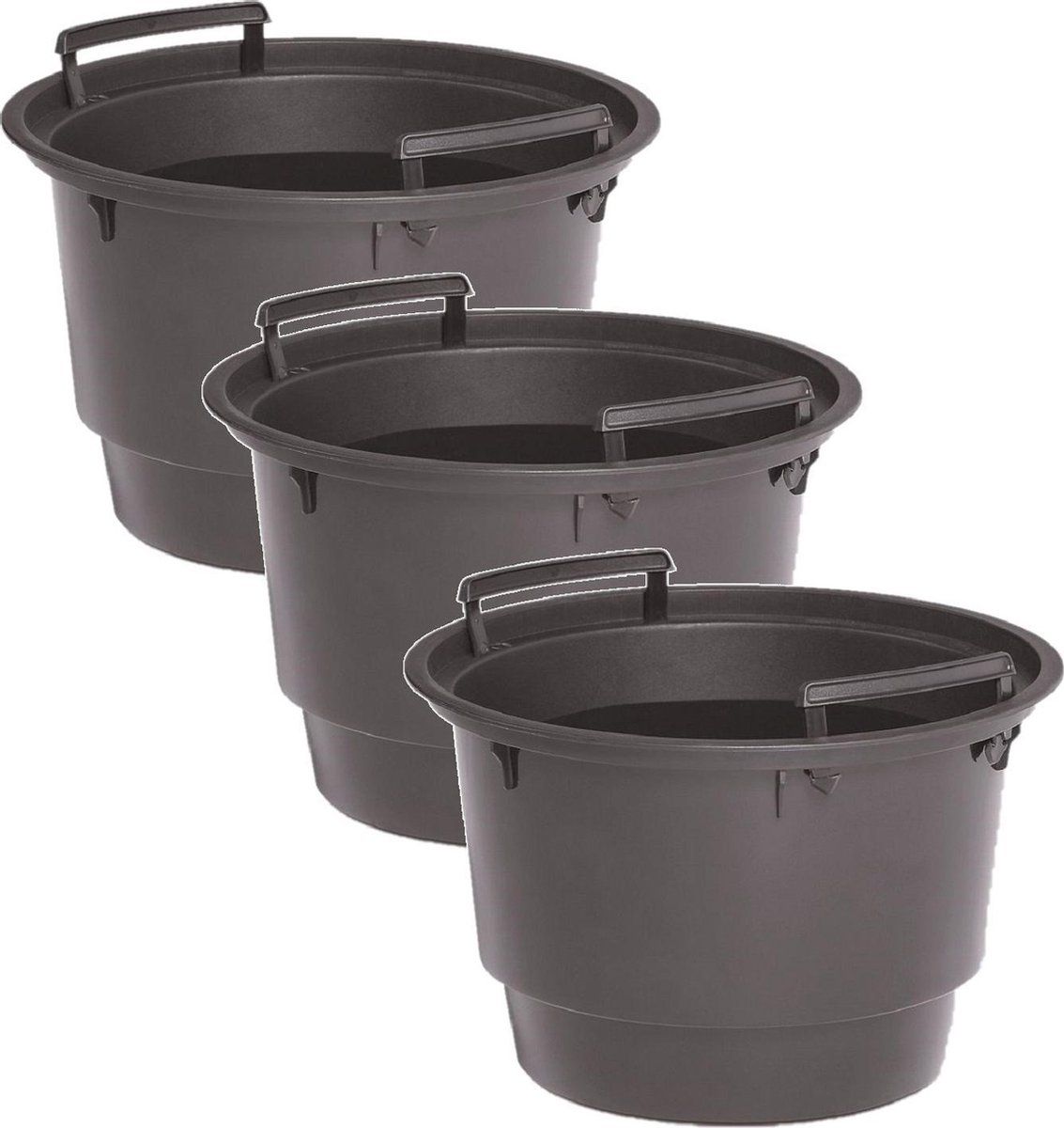 Prosperplast 3x Stuks kunststof binnenpotten/inzetbakken met handvat voor bloempotten/plantenpotten 40 liter - grijs - Potten voor yoghurtmakers