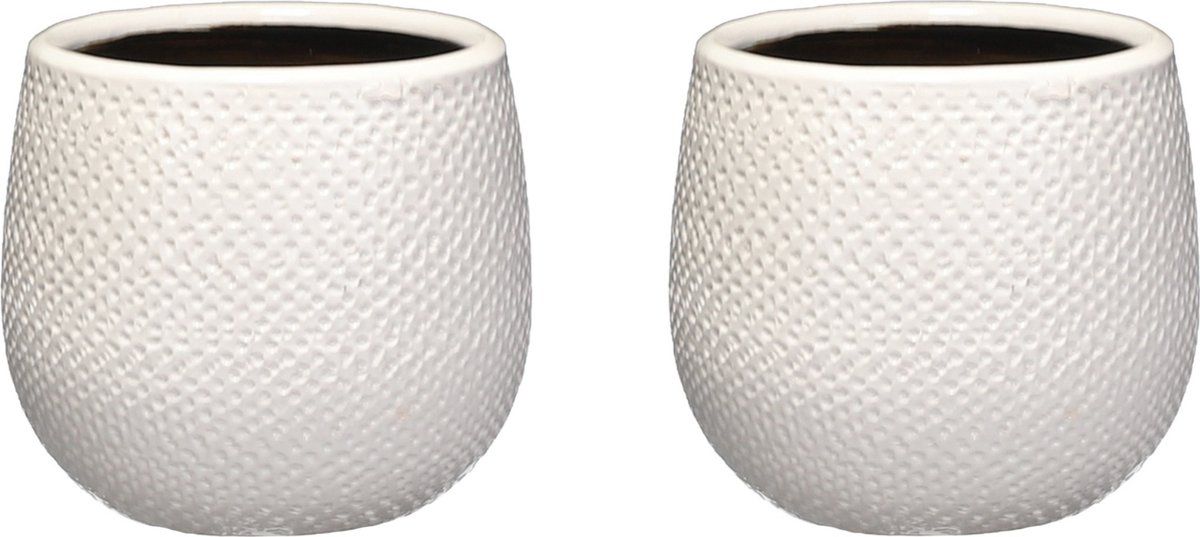 Mica Decorations Set van 2x keramiek bloempotten 12 x 14 cm geribbeld wit - Potten voor yoghurtmakers