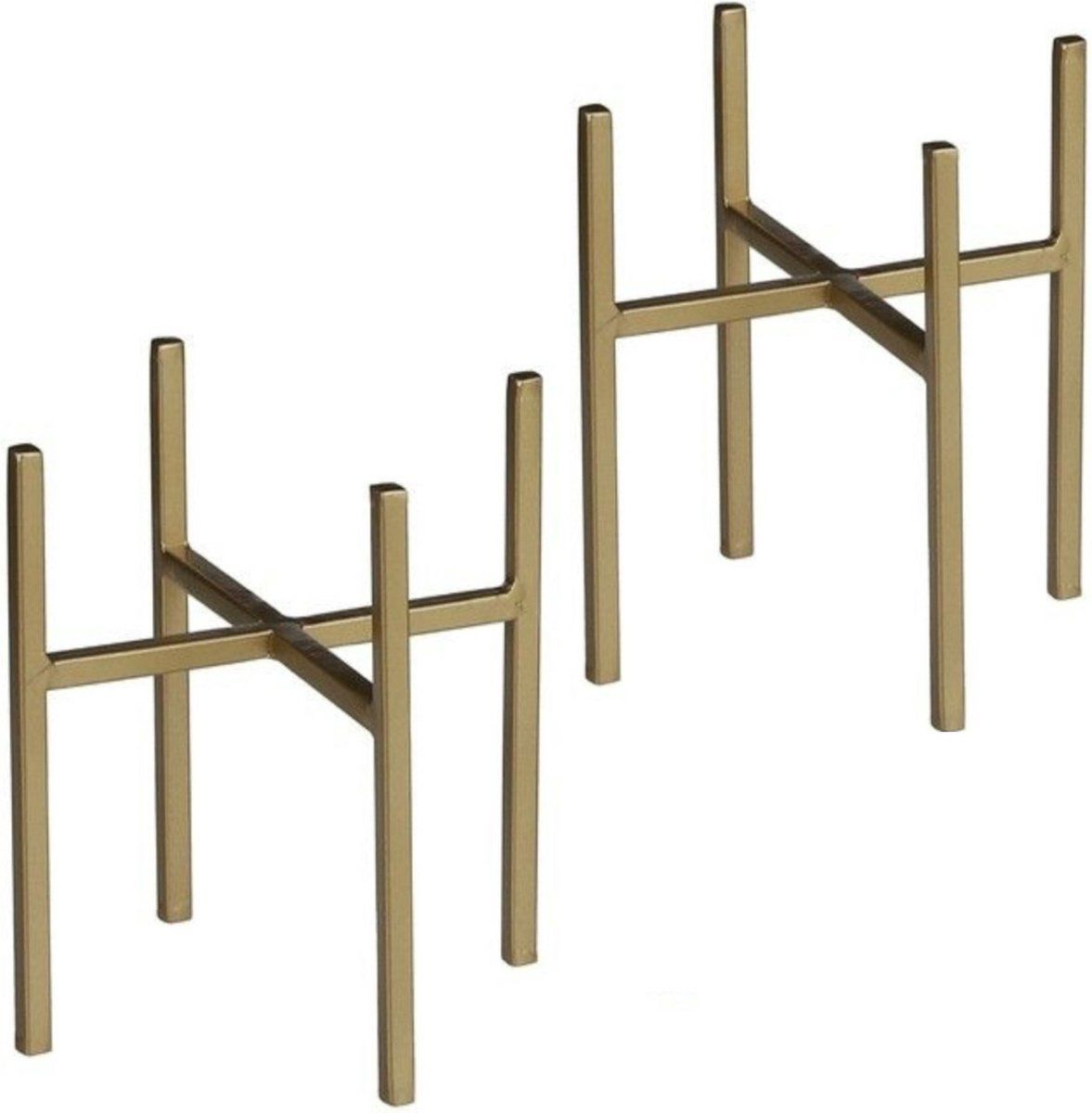 Mica Decorations - bloempot plantenstandaard/verhoger - 2x stuks - goud - D11.5 x H16 cm - Potten voor yoghurtmakers