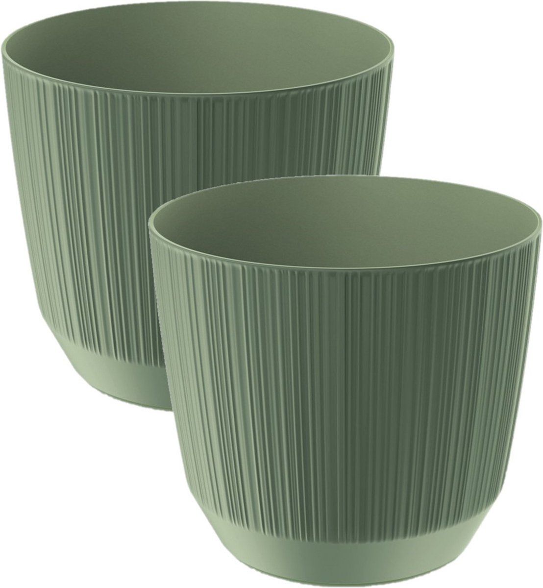 Prosperplast 2x stuks moderne carf-stripe plantenpot/bloempot kunststof dia 19.5 cm/hoogte 17 cm groen voor binnen/buiten
