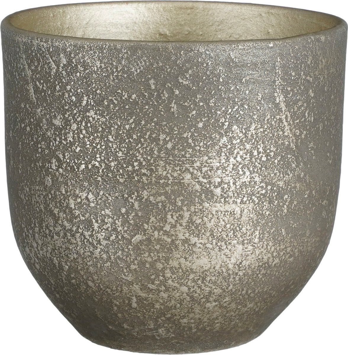 Mica Decorations - Plantenpot/bloempot - terracotta - zwart/goud flakes relief - D24/H22 cm - Potten voor yoghurtmakers
