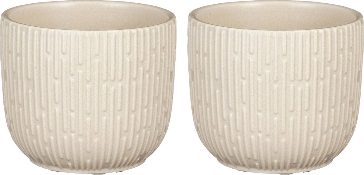 Mica Decorations - Plantenpot/bloempot - 2x stuks - keramiek - mat wit - D11/H9 cm - Potten voor yoghurtmakers