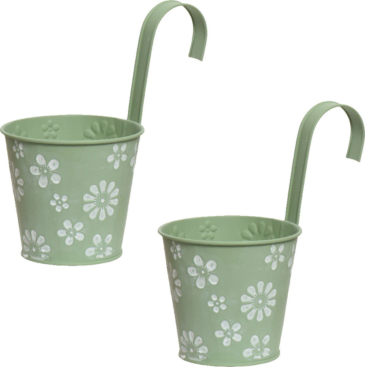 Decoris Bloempotten Ophangbaar - 2x - Zink - 32 x 16 cm - Lichtgroen