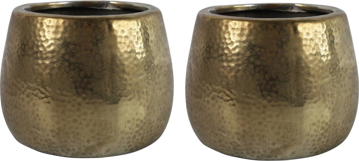 Countryfield Bloemen/plantenpot Oro - terracotta - goudkleurig - D18.5 x H14.5 cm - 2 stuks - Potten voor yoghurtmakers
