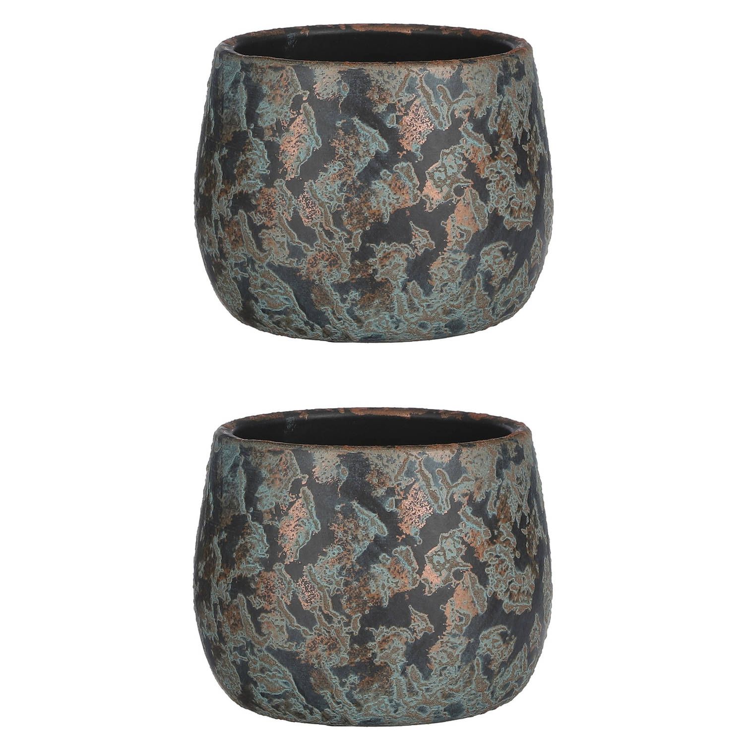 Mica Decorations Set van 2x keramiek aardewerk bloempotten 13 x 16.5 cm flakes koper
