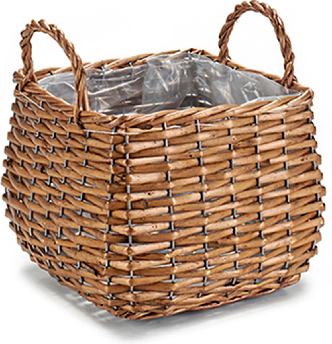 Ibergarden Plantenbak mand gevlochten riet met binnenmand 23 x 23 x 15 cm - Voor binnen/buiten