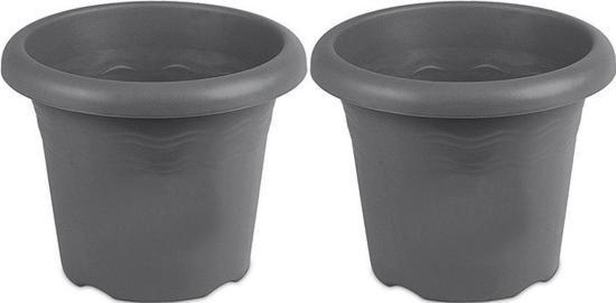 Prosperplast 2x stuks orient stijl plantenpot/bloempot kunststof dia 13 cm antraciet grijs