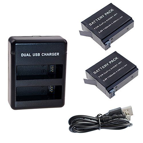 Suptig - Set van 2 accu's met oplader voor GoPro HERO4 Black, Gopro HERO4 Silver en Gopro AHDBT-401 - Acculaders voor camera's