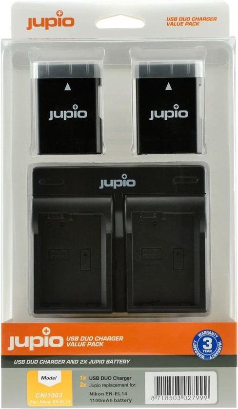 Bekijk productJupio Kit: 2x EN-EL14/EN-EL14A 1100mAh Battery + USB Dual Charger - Accu's voor camera's