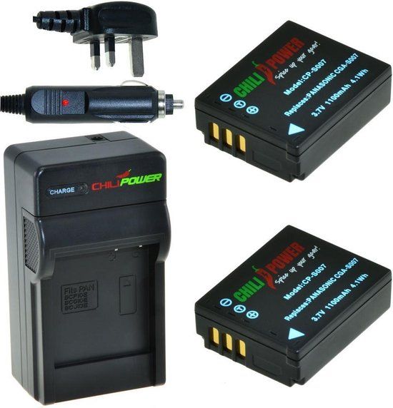 ChiliPower 2 x CGA-S007 accu's voor Panasonic - Charger Kit + car-charger - UK version