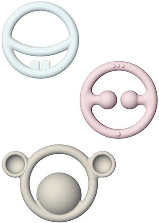 Moluk Bijtringen Pastelkleuren 12.5 Cm - Blauw/Geel/Roze - Rubber