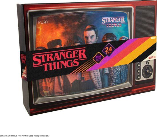 Deze Deluxe adventskalender bevat cadeaus geïnspireerd op verschillende personages, variërend van Eleven tot de Demogorgon, en opvallende elementen uit de serie. De prachtige televisiedoos is op zichzelf al een wonder, die de Upside Down tot leven brengt dankzij het lenticulaire scherm dat wisselt tussen de vriendengroep en Vecna.