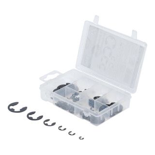 Kenmerken: In assortimentsdoos gemaakt van verenstaal zwart gefosfateerd Omvang van de levering: 25 E circlips 3 mm 25 E circlips 5 mm 20 E circlips 6 mm 10 E circlips 10 mm 8 E circlips 12 mm 6 E circlips 15 mm