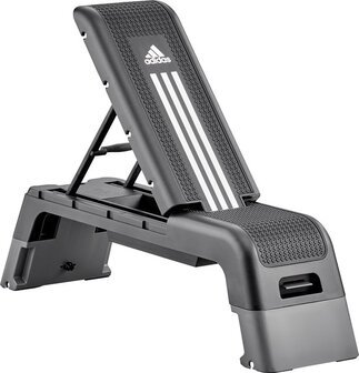 Het Adidas HIIT Deck is direct klaar voor gebruik! Het Adidas HIIT Deck combineert een aerobe step en halterbank in een compact en configureerbaar trainingsplatform. Met meer dan 20 verschillende set-up mogelijkheden brengt het Adidas HIIT Deck GA0052 jouw kracht- en cardiotraining naar een hoger niveau. Schakel snel tussen hellings-, dalings- en vlakke bankinstellingen en door eenvoudig hoogteaanpassingen toe te passen vergroot je de effectiviteit van je oefeningen. Verbeter je trainingen verder door trainingsaccessoires toe te voegen aan je HIIT Deck routine. Om je vast op weg te helpen, worden een Adidas resistance tube en een springtouw meegeleverd. Deze vind je in het opberg vak van het deck. Daar vind je ook de Scan to Train QR-code, die je toegang geeft tot exclusieve online trainingsinhoud. Het trainingsoppervlak van de Adidas HIIT Deck biedt met zijn goede grip zowel de tractie die je nodig hebt om te stappen en springen, als het comfort en de stabiliteit die nodig zijn voor bankdrukken en andere oefeningen met gewichten. Het HIIT Deck is uitgerust met antislipvoetjes, voor meer stabiliteit en schokabsorptie. Het Adidas HIIT Deck is robuust, compact en gemakkelijk te verplaatsen.