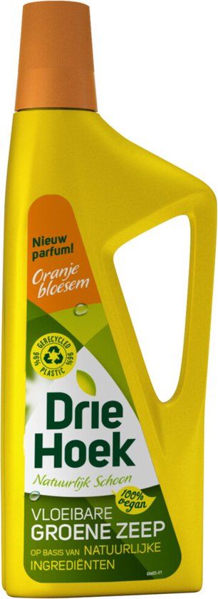 Driehoek Vloeibare Groene Zeep Oranjebloesem is een natuurlijk schoonmaakmiddel met een inhoud van 725 ml. Deze multifunctionele zeep, welbekend om zijn effectiviteit en milieuvriendelijkheid, is verrijkt met een frisse toets van oranjebloesem. Het product is ontworpen om een variëteit aan oppervlakken te reinigen - van tegels en hout tot kunststof en leer. Het brengt niet alleen een natuurlijke frisheid in huis, maar pakt ook hardnekkig vuil aan, zonder agressieve chemicaliën. Hierdoor is Driehoek Vloeibare Groene Zeep Oranjebloesem een veilige, milieubewuste keuze voor huishoudens die een effectief, doch zacht reinigingsmiddel zoeken. De vloeibare groene zeep is eenvoudig in gebruik en kan op vele manieren verdund worden, afhankelijk van het reinigingsdoel. Hierdoor is deze fles van 725 ml verrassend zuinig in gebruik.