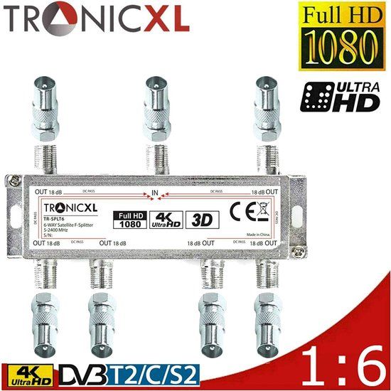 TronicXL 6-voudig BK verdeler Premium TV kabel adapter antenneverdeler kabeltelevisie DVBC voor Unitymedia Splitter