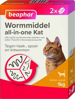 Beaphar All-in-one Ontworming Tabletten Kat - 2 tabletten - Antiparasitaire middelen