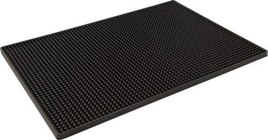 Zwart rubberen barserveermatten in de afmeting 45 x 30 x 2 cm.