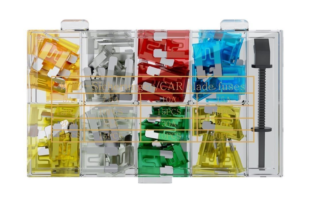 each 10 pcs.: 5 A; 7.5 A; 30 A\neach 15 pcs.: 10 A ; 15 A ; 25 A\neach 25 pcs.: 20 A\nincluding tool for easily removing the fuse (fuse puller)\nfields of application: automotive, transport technology, industrial plants