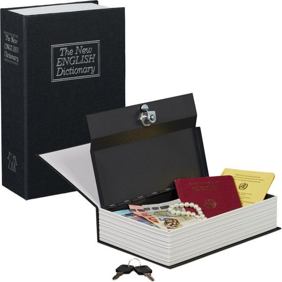 Relaxdays Boekkluis met metaalkluis Engels woordenboek tresor safe kluisje zwart - Autobeveiliging en - veiligheid