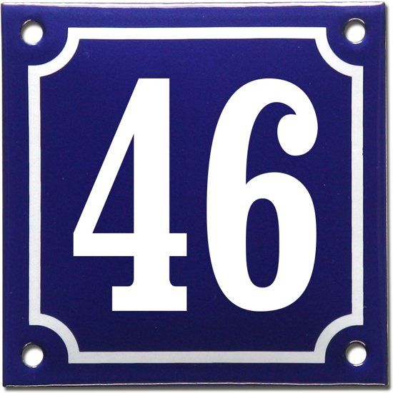 EmailleDesign® Emaille huisnummer blauw/wit nr. 46 - Autobeveiliging en - veiligheid