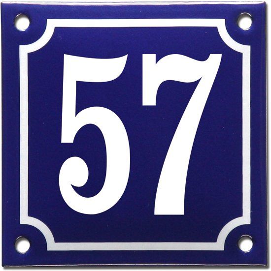 EmailleDesign® Emaille huisnummer blauw/wit nr. 57 - Autobeveiliging en - veiligheid