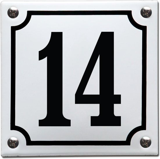 EmailleDesign® Emaille huisnummer wit/zwart nr. 14