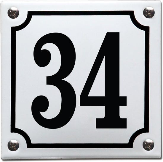 EmailleDesign® Emaille huisnummer wit/zwart nr. 34 - Autobeveiliging en - veiligheid