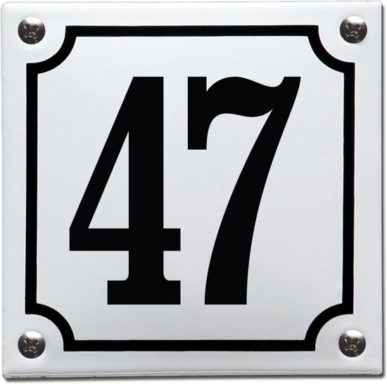 EmailleDesign® Emaille huisnummer wit/zwart nr. 47 - Autobeveiliging en - veiligheid