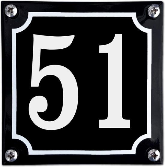 EmailleDesign® Zwart emaille huisnummer - 51 - Autobeveiliging en - veiligheid