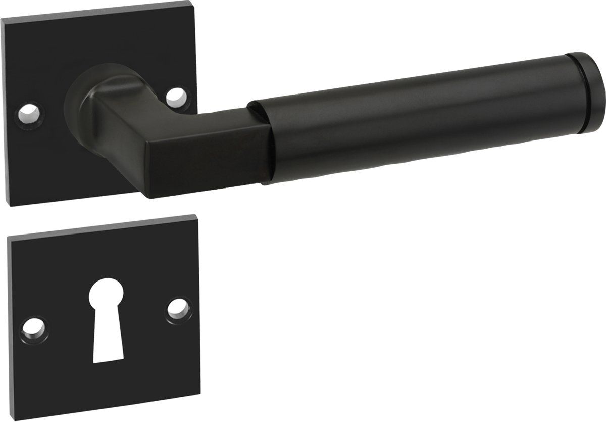 Impresso binnendeurbeslag Aston - Vierkant Rozet met Vierkant Sleutel rozet - Aluminium - Zwart