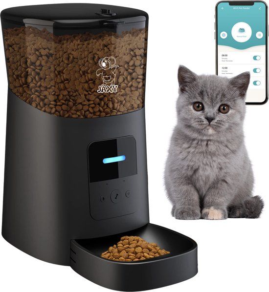 JAXY Voerautomaat - Automatische Voerbak Kat en Hond - Voerdispenser - Met App - 6L - Zwart - Automatische voerbakken