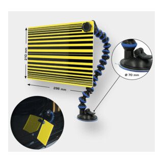 • Door de vrij instelbare zwanenhals met zuignap kan de reflector in de buurt van de bult worden geplaatst, invallend licht spiegelt de strepen op de lak