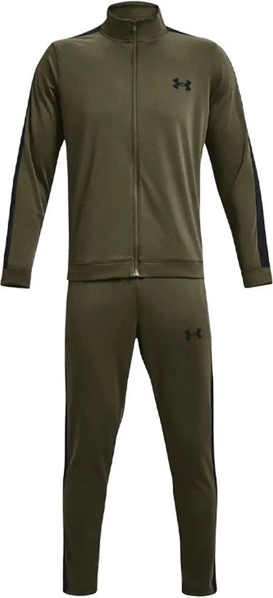 Draag deze casual trainingspak voor heren van Under Armour en kleed je stijlvol tijdens de koude dagen. Dit marineblauwe pak is gemaakt van lichtgewicht, duurzaam polyester, wat zorgt voor casual comfort tijdens het ontspannen! De bovenkant beschikt over een volledige ritssluiting en een opstaande kraag voor een stoere maar casual look.. De geribbelde rand zorgt voor de beste pasvorm, terwijl de broek een elastische taille gebruikt om een ontspannen pasvorm te creëren. Ook is het merk Under Armour versierd op de borst en dijen.