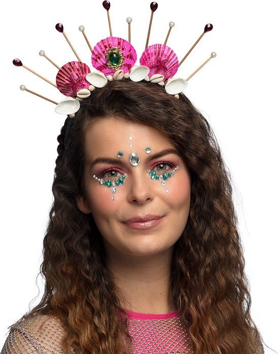 Of je nu op zoek bent naar een accessoire voor een strandfeest, festival of je zeemeermin kostuum compleet wil maken voor Carnaval, deze mooie Halo kroon met roze schelpen is precies wat je zoekt. De diadeem is versierd met witte en roze schelpen en glimmende steentjes voor een magische Boho look.