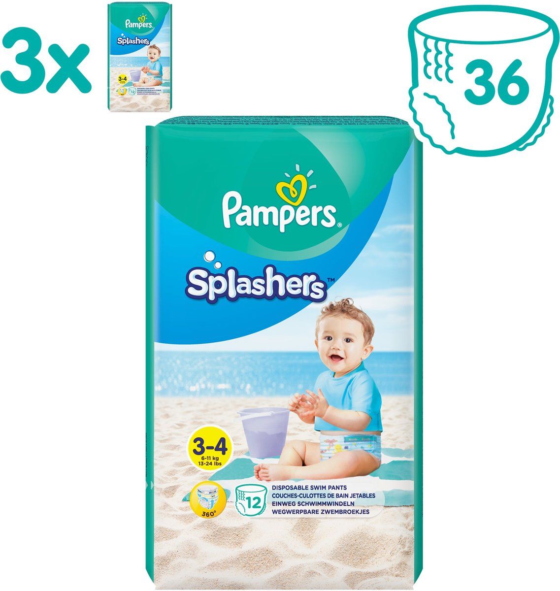 Pampers Splashers 3x12 Wegwerpbare Zwemluiers - Maat 3-4 - Voordeelverpakking