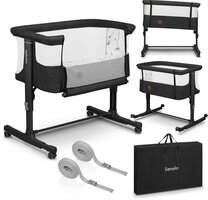 Lionelo Aurora 3-in-1 Co-sleeper - Graphite - Babybedje tot 9 kg - Meegroeibed - Inclusief Matras - Babybedjes voor aan bed